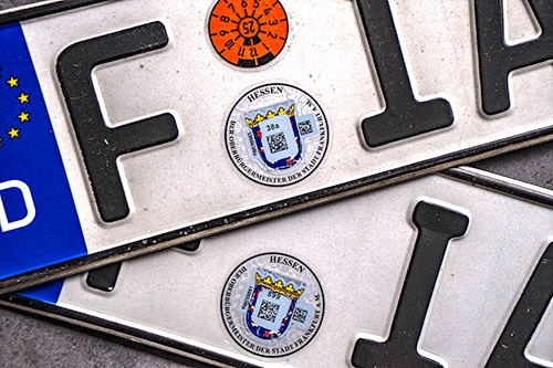 Ziehen Sie die Plakette von jedem Kennzeichen ab und legen Sie den 3-stelligen Sicherheitscode frei.
