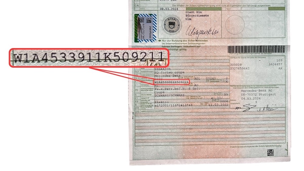 Der Fahrzeugbrief muss einen Sticker haben (siehe Bild unten)